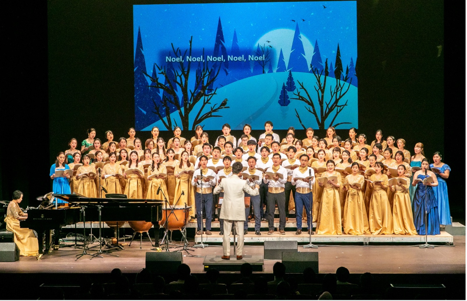 神様の愛を実践したイエスキリストの一生。その生涯が「荒野の果てに」で紡がれ、「O Holy Night」では、声楽家とコーラスによって、荘厳に響き渡りました。